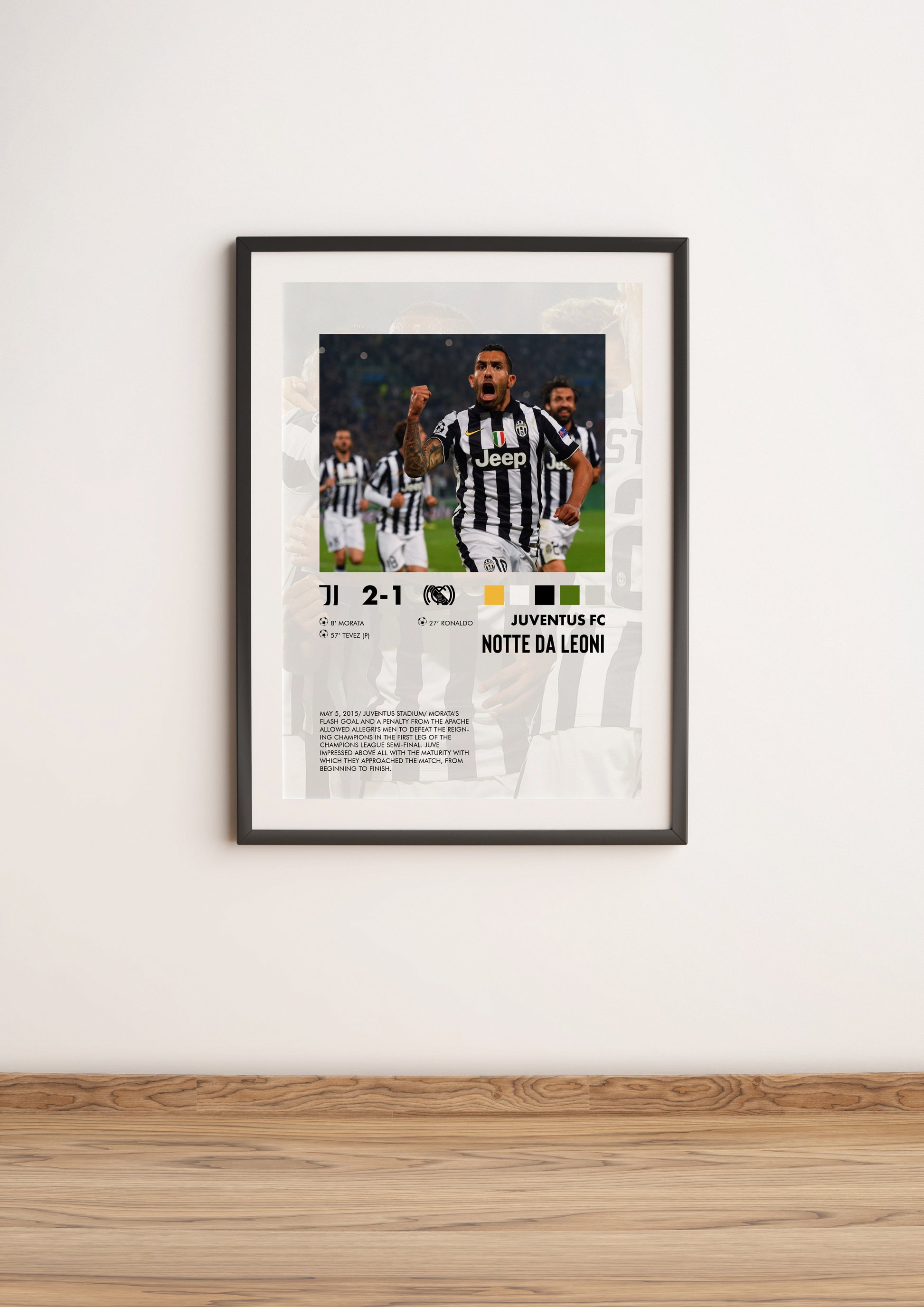 Elevate the aesthetic appeal of your space with our exclusive poster capturing the iconic Juventus vs. Real Madrid match on May 5, 2015, at the Juventus Stadium.